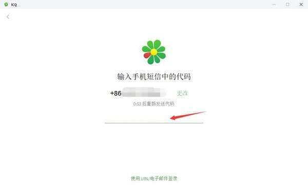 3、之后ICQ会向你的手机发送验证码短信,将收到的短信中的数字填入下方的输入栏中,即可自动登录。