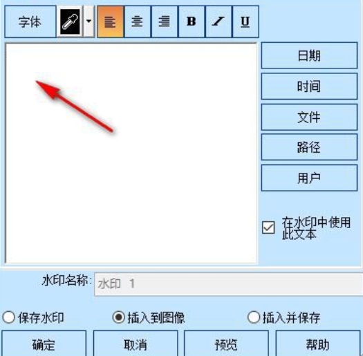 4、如图所示,显示文字设置功能,在这里编辑新的水印