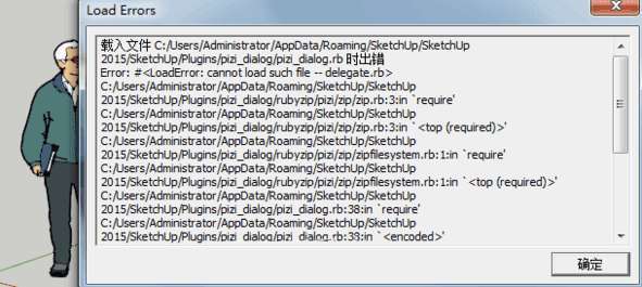 出现这个问题,是因为sketchup的安装路径出现了中文或中文符号的原因。