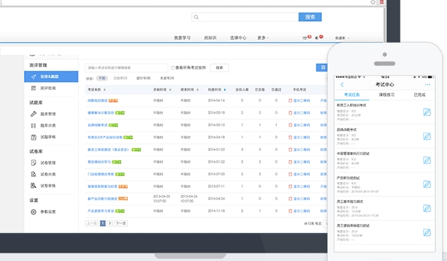 学习计划与知识库无缝链接,实时跟踪学习进度、安排考试实时考核,手机端也能轻松考试