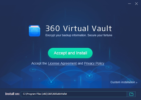 1、在PC下载网下载360 Virtual Vault官方版压缩包,然后进行解压,解压后,双击exe程序,进入安装界面,然后点击右下角