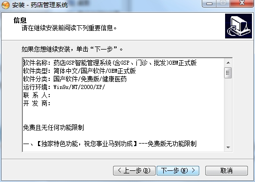 5、选择软件安装路径,这里默认选择D:药店管理系统,点击下一步。