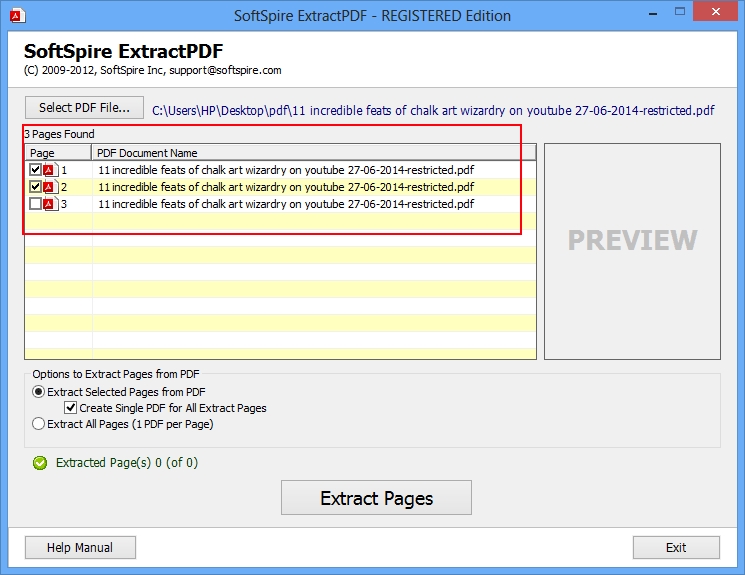 此工具的此功能允许您仅提取选定的PDF文件页。例如,如果您只想提取4个页面,则只选择这些页面,软件将从PDF文件中提取它们。