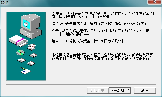 1、在PC下载网下载翔科进销存管理系统最新版压缩包,然后进行解压,解压后,双击exe程序,进入安装界面,然后点击下一步