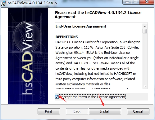 1、在PC下载网下载该软件压缩包,然后进行解压,解压后,双击exe程序,进入安装界面,勾选箭头所示,然后点击Install