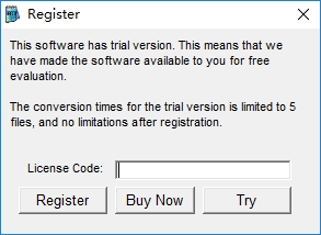 1、打开Convert Word to RTF软件提示激活界面,可以在这里输入注册码,点击TRY进入试用界面