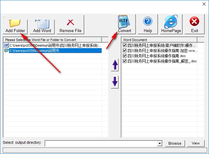 3、支持添加文件夹,将保存在文件夹中的Word转换为RTF