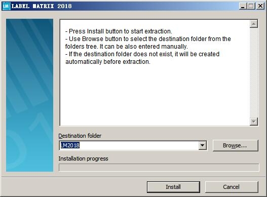 1、双击“label matrix v2018.exe”选择解压目录,然后点击install