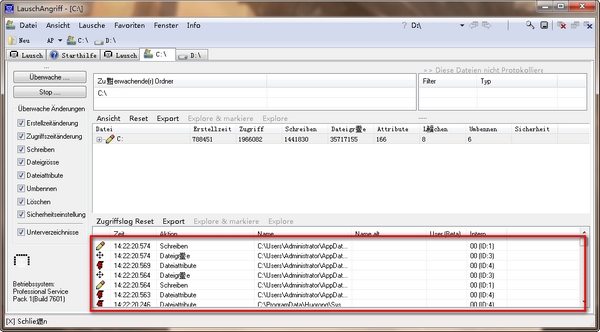 LauschAngriff检测文件和文件夹(本地和网络)中的更改。在网络中,您可以监视网络驱动器。