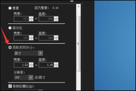 6、或者选择百分比,保持纵横比选择勾选或取消,然后输入宽度和高度数值。