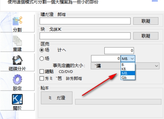 2、您可以选择将指定的文件最大分割为KB、GB、M等不同的大小