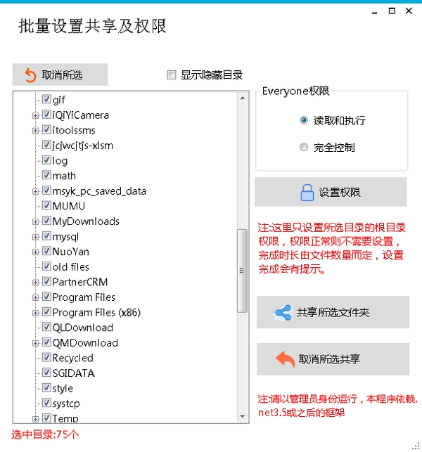 2.批量设置共享及权限官方版可以设置是否显示隐藏目录