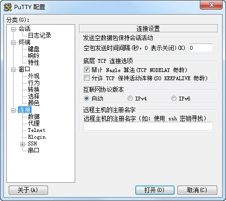 把Putty下载到机器上,双击putty.exe,就出现如图1的配置界面。