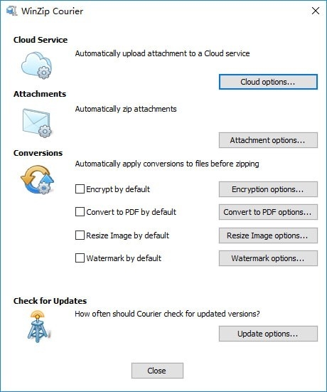 WinZip Courier 通过在发送邮件时自动压缩附件,降低邮件大小,在不改变邮件使用习惯和增加任何附加操作的情况下,可以自动提升邮件发送速度,打造自己的邮件高速通道。