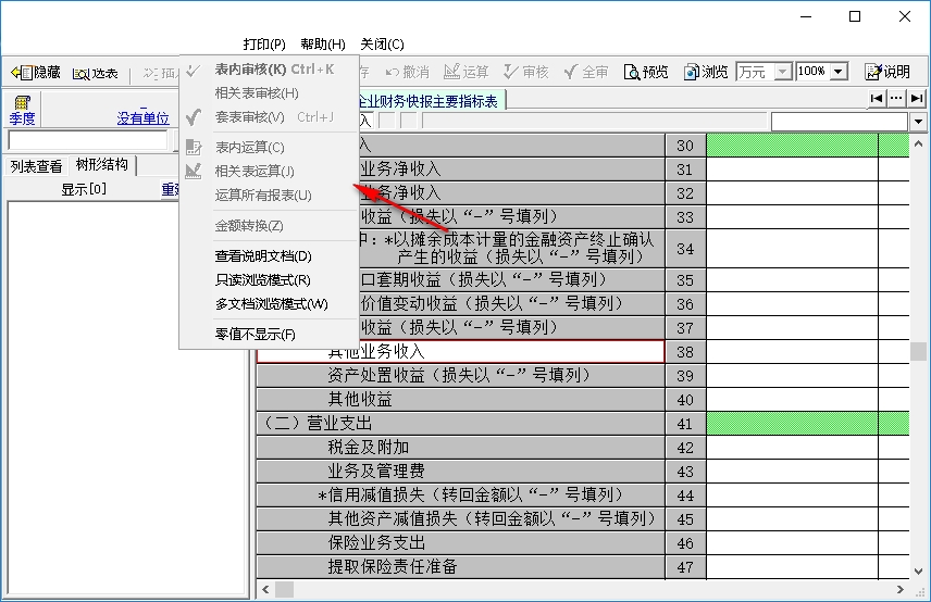 7、支持表内审核、相关表审核、套表审核、表内运算、相关表运算、运算所有报表、金额转换