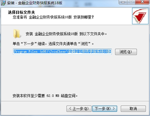 2、显示软件的安装地址C:program Files (x86)JoinCheer金融企业财务快报系统18版<业财务快报系统18版