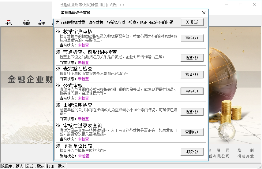 8、数据质量综合审核,为了确保数据质量,请在数据上报前执行以下检查,修正可能存在的问题
