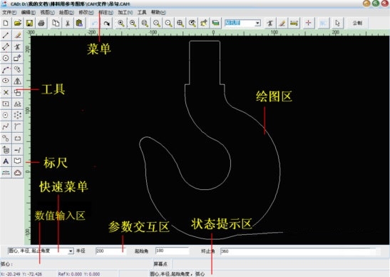 1、 值得说明的是,多数指令是针对指定点中心现的(如开槽)角过渡等。这一点不同于CAD(优于CAD)。其它与CAD雷同。应用中注意圆弧、凹口或凸的方向性。