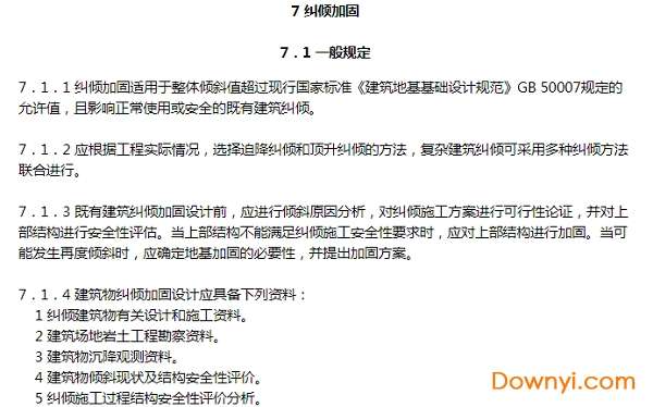 总则、术语和符号、基本规定、地基基础鉴定、地基基础计算、增层改造、纠倾加固、移位加固、托换加固、事故预防与补救、加固方法、检验与监测。