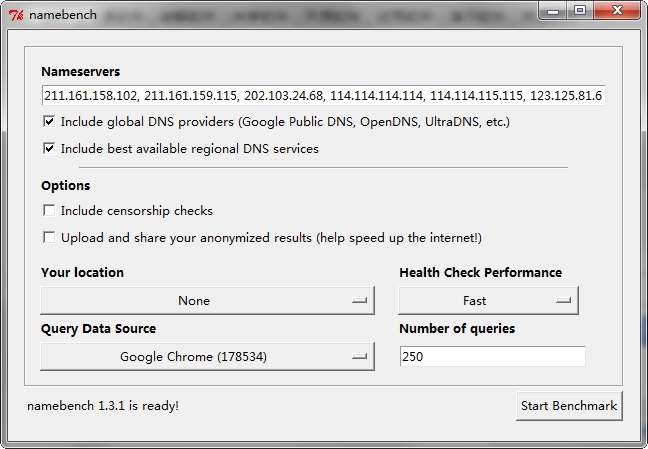 namebench可以帮你寻找你的电脑能访问的最快的DNS服务器,通过测试并输出详细的图形报表告诉你,为什么所选择的DNS服务器是最快的。