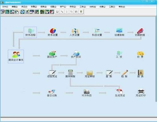 有多种快速编辑录入会计凭证方法,期未结转、登账、结账、所有报表一键完成,打印会计凭证、分类账、明细账和所有报表快速方便,不需任何设置;固定资产折旧简捷,工资管理方便,出纳日记账功能强大,收费管理灵活简洁。