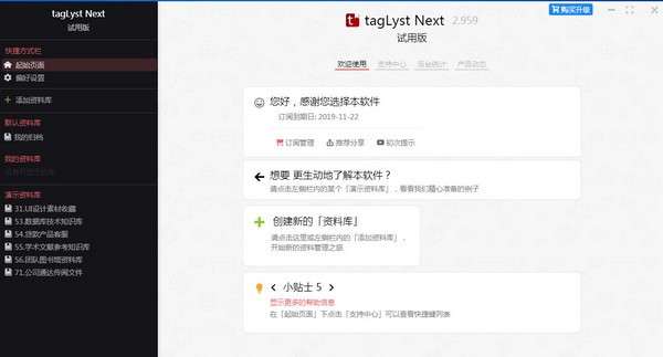 6、可以通过TagLyst Next建立资料库,可以设置文件库