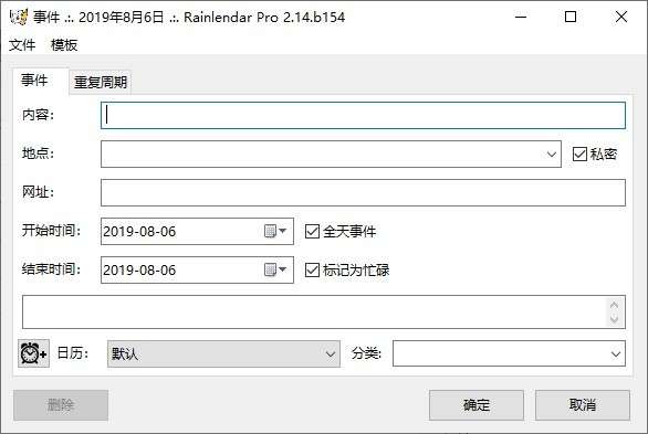 说完外表说内里。小巧,免费,功能强大,支持中文语言包,就这几点就可以满足绝大多数人的要求了。如果你非要找茬说你用的是linux的话,不好意思,Rainlendar也同样支持。难道现在你还没有欲望来下载回来瞧瞧吗?另外还有皮肤和语言包哦。Rainlendar占少量系统资源,可以设置半透明效果。它没有太多烦琐的设置,你可以设置它的4种位置方式(总在最前,总在最后,普通窗口和钉在桌面上),当然Rainlendar也像其他桌面日历一样,有个非常不错的事件提醒功能,防止有重要事情由于在看电影或游戏中而错过。