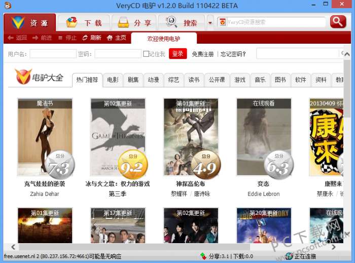 电驴更新日志: 1.修复部分bug 2.优化了部分功能声明:因版权及厂商要求,pcsoft提供的是电驴软件的官方下载包