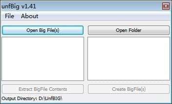unfBig是一款可以帮助你在电脑上打包big文件的应用程序,你可以通过软件提取big内容,可以将内容打包,使用过程简单,对于需要分析big文件内容地方朋友很适合,big保存的数据还是非常多的,通常是游戏里面的数据文件,一些游戏背景音乐和其他类型的音效都会保存在big文件,如果你需要从官方的游戏获取音效,可以通过分析big文件获取,这里提供的unfBig软件就可以帮助你完成big文件拆包打包操作,需要的朋友就下载吧!