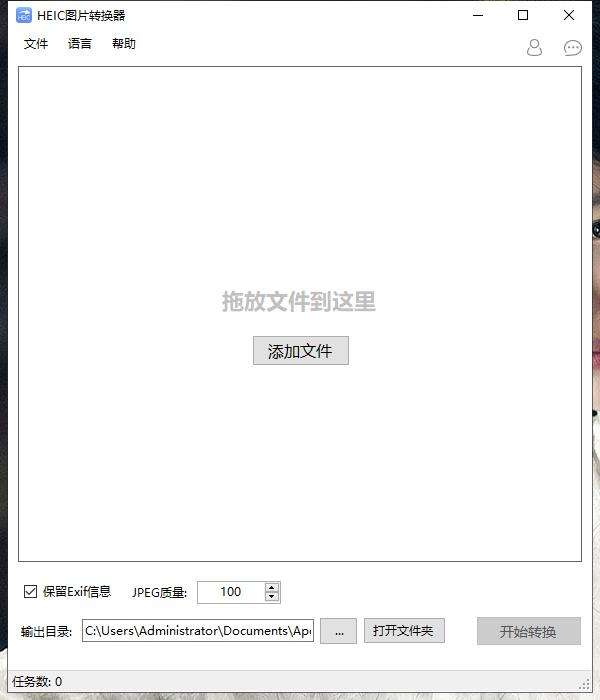 1. 打开HEIC图片转换器软件,点击“添加文件”选择所需转换的HEIC格式图片,或这直接将图片文件拖放到软件主界面的文件上传区域框内以添加所需转换的HEIC图片。