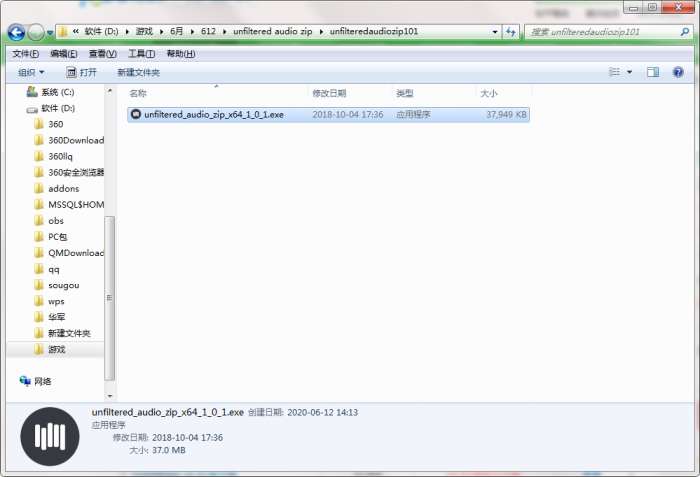 2.解压unfiltered audio zip软件,运行“EXE.文件”