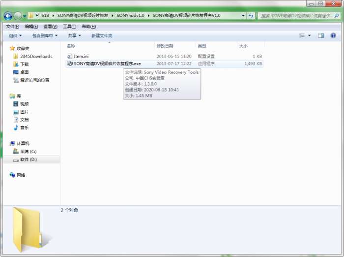 2.解压SONY高清DV视频碎片恢复软件,运行“EXE.文件”