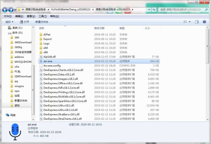 2.解压语音识别合成助手软件,运行“EXE.文件”