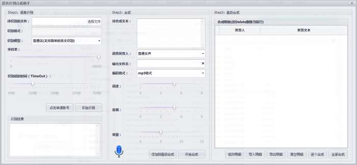 语音识别合成助手官方版是一款使用了腾讯AI,百度AI开放平台的接口开发的语音识别并一键合成助手。如果您在日常生活中遇到了需要语音识别的内容,都可以使用语音识别合成助手最新版进行一键合成识别。语音识别合成助手官方版支持导入导出带合成数据,以便修改,支持逐条修改合成明细。