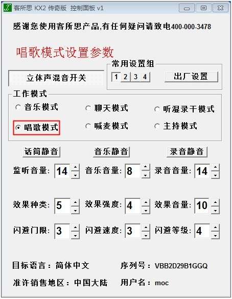 2.聊天模式(适合语音聊天,声音将没有效果)