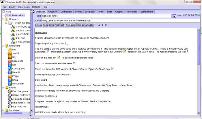 WriteItNow是一款在电脑上使用的小说写作软件,算得上是好用的小说创作软件,因为使用它进行创作的途中,你可以做出笔记,可以记录下人物、活动、地点、道具、笔记、私聊、参考、提交等等,这样,在你创作大篇幅小说的时候,就不会有遗忘的内容,保证了小说的合理性和逻辑性,此外,软件还有同义词、故事板、拼写检查、字数统计等功能,都为用户提供了很多便利,另外,在写小说的时候都会用到各种各样的名称,这很让人头疼,所以软件为用户制作了一个姓名生成器,真的是非常贴心。