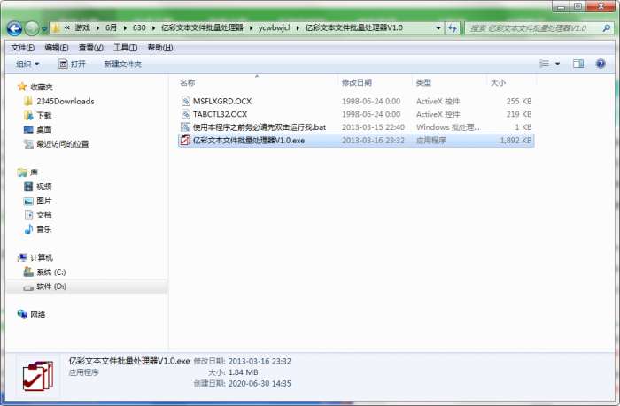 2.解压亿彩文本文件批量处理器软件,运行“EXE.文件”