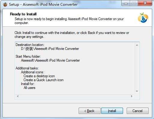 Aiseesoft iPod Movie Converter官方版正在安装,耐心等待一下