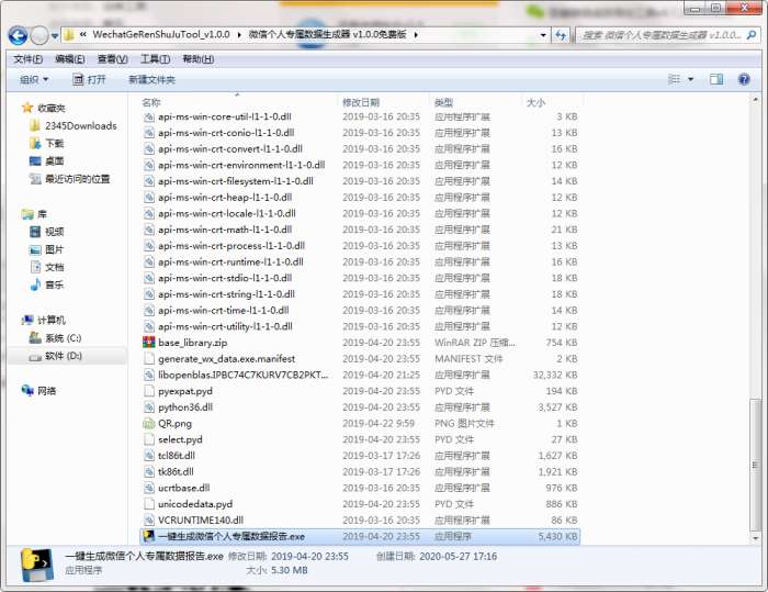 2.解压微信个人专属数据生成器软件,运行“EXE.文件”