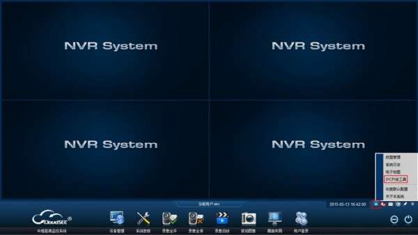 对,这个主角隐藏在我们的JNVR软件中,在电脑上打开JNVR软件,鼠标单击系统主界面右下角的“更多功能”按钮 ,在弹出的菜单中选择“IPC 升级工具”子菜单,则系统打开其升级界面,其图如下所示: