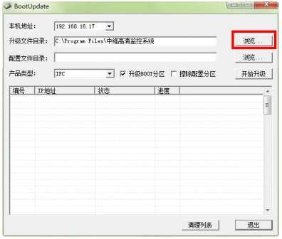 2.打开BootUpdate.exe,点击“浏览”选择升级文件所在的文件夹,点击开始升级