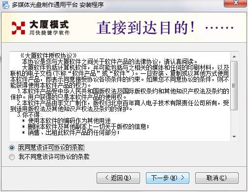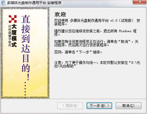 3.双击打开,进入多媒体光盘制作通用平台软件界面,点击下一步