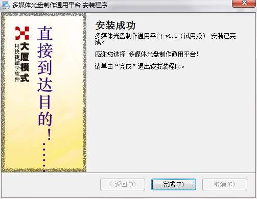 5.点击完成,多媒体光盘制作通用平台软件安装成功