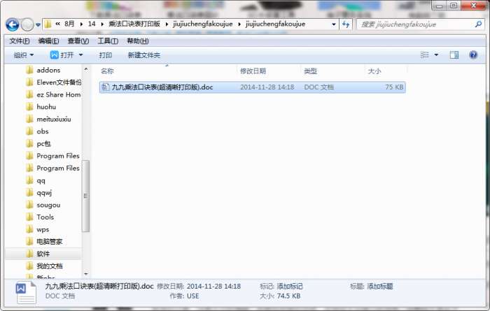3、如果您是老师,也可以将doc文件打印出来,分发给学生练习,节约购买九九乘法口诀表的金钱