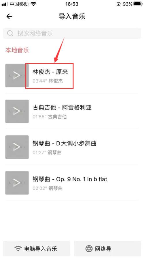 下载后自动导入,在导入音乐页面就可以看到刚刚导入的音乐啦,如下图