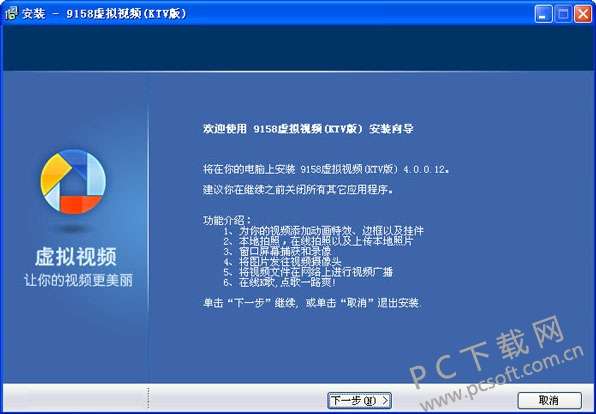 小编推荐:9158虚拟视频还可以与远方的朋友分享你电脑上的精彩视频、照片、动画、Flash 甚至桌面都可以展现给网友。当然我们PC还有mvbox虚拟视频、ET虚拟视频等相关软件提供下载,有需要的小伙伴请点击下载使用。