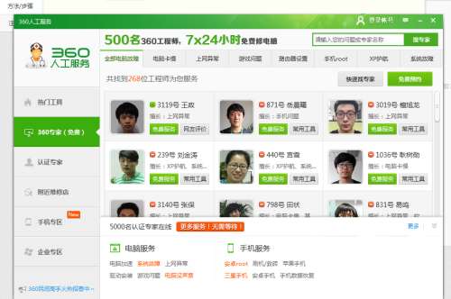 全不电脑故障,共有268位360电脑专家!您可以选择其中的任一一位为您解决问题。