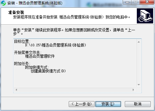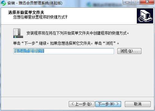 3、选择软件安装路径,这里默认选择D:Program Files雅迅会员管理系统(体验版),点击下一步。