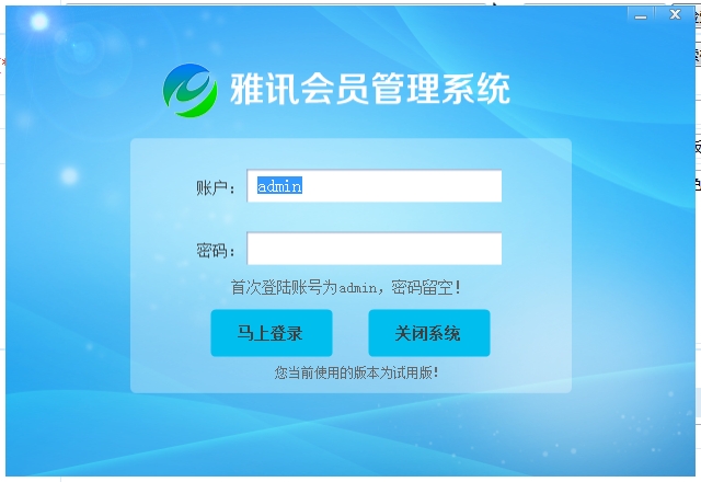 1、下载本站资源,找到雅迅会员管理系统(试用版).exe,双击进行安装。