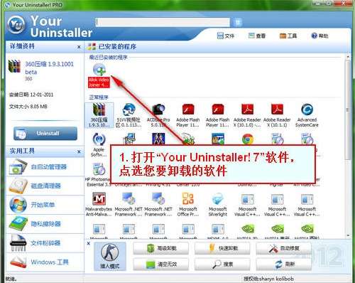 1、打开“Your Uninstaller!”软件,点选您要卸载的程序(反红色的部分,为最近安装的软体);